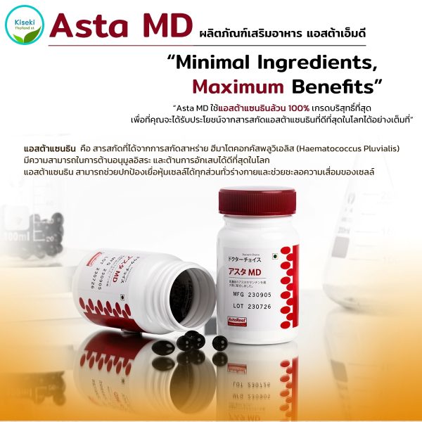 Asta MD วิตามินพรีเมี่ยม สูตร Astaxanthin 100% 30เม็ด นำเข้าจากญี่ปุ่น